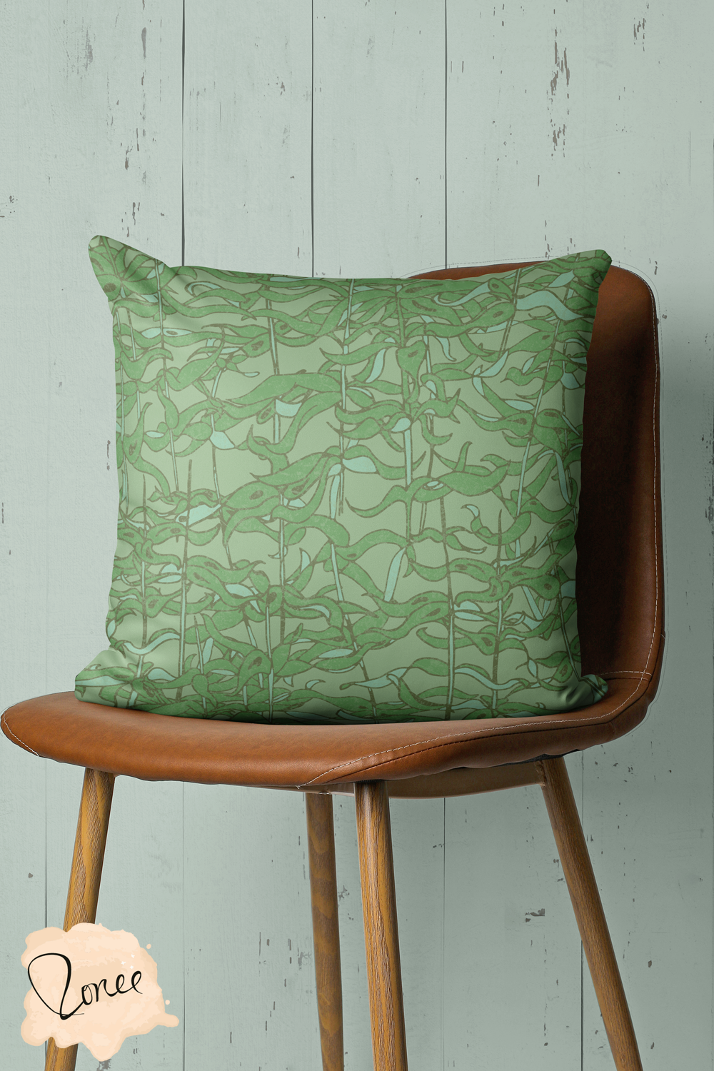 Peaceful green textured botanical seaweed pattern giving undersea vibes, with a soft sway. This turquoise seaweed botanical pattern is available in a variety fabrics, wallpapers and home decor.